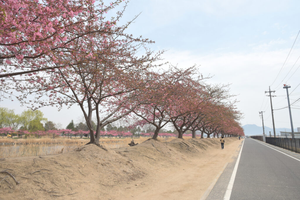 児島湾締め切り堤防を南方向に渡ろうと車を走らせましたが、締め切り堤防直前で渋滞になり、進路を変えて岡南飛行場へと向かいました。