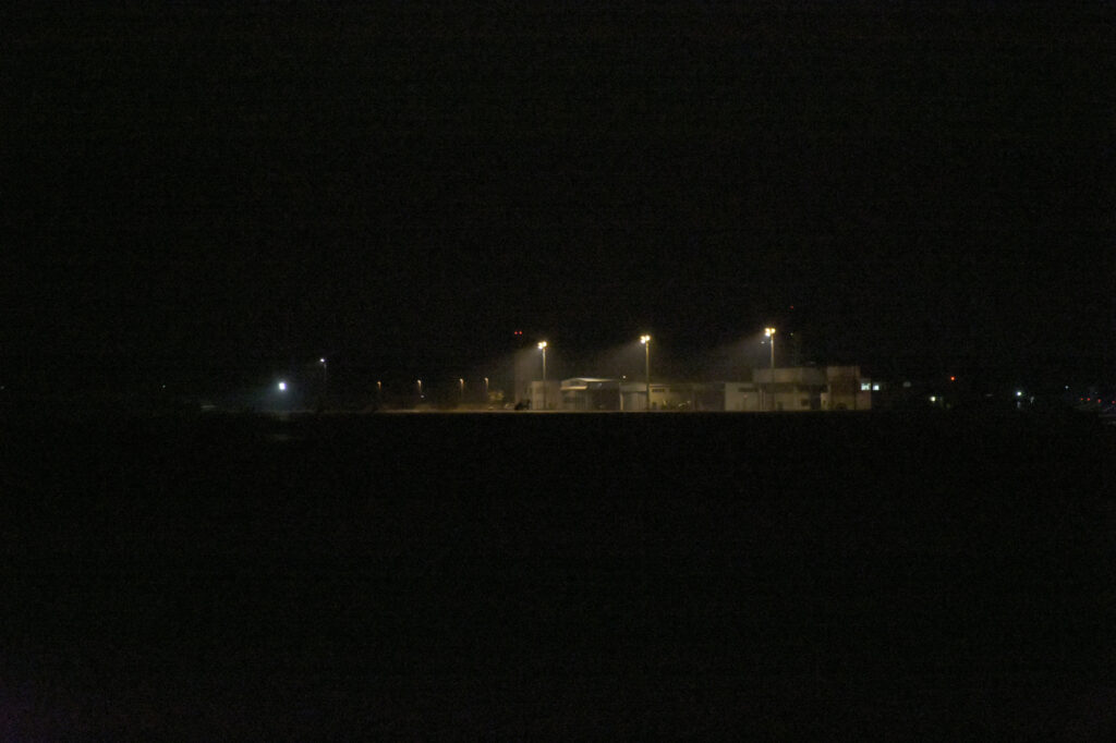 岡南飛行場の照明の光が通っている場所が見えますね。